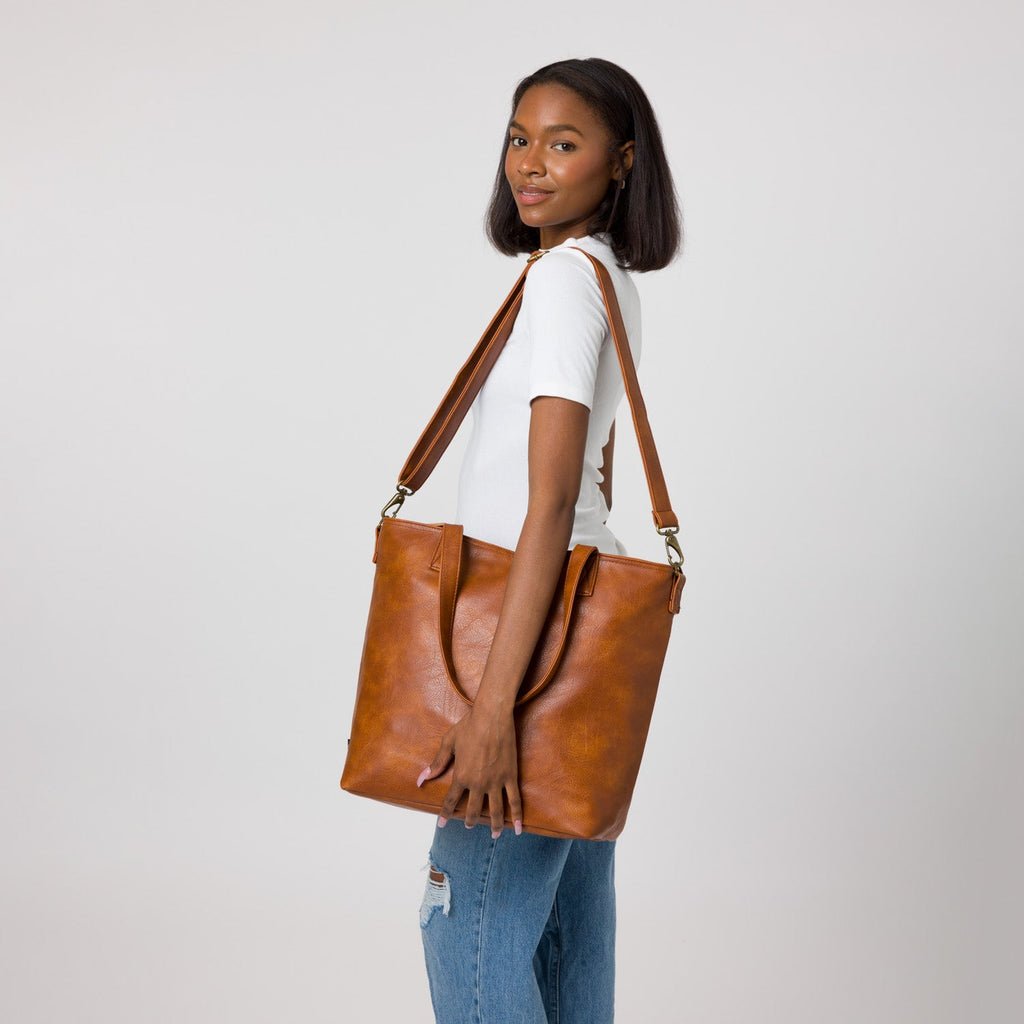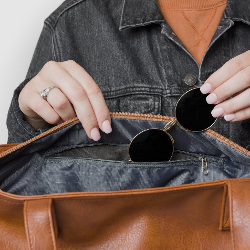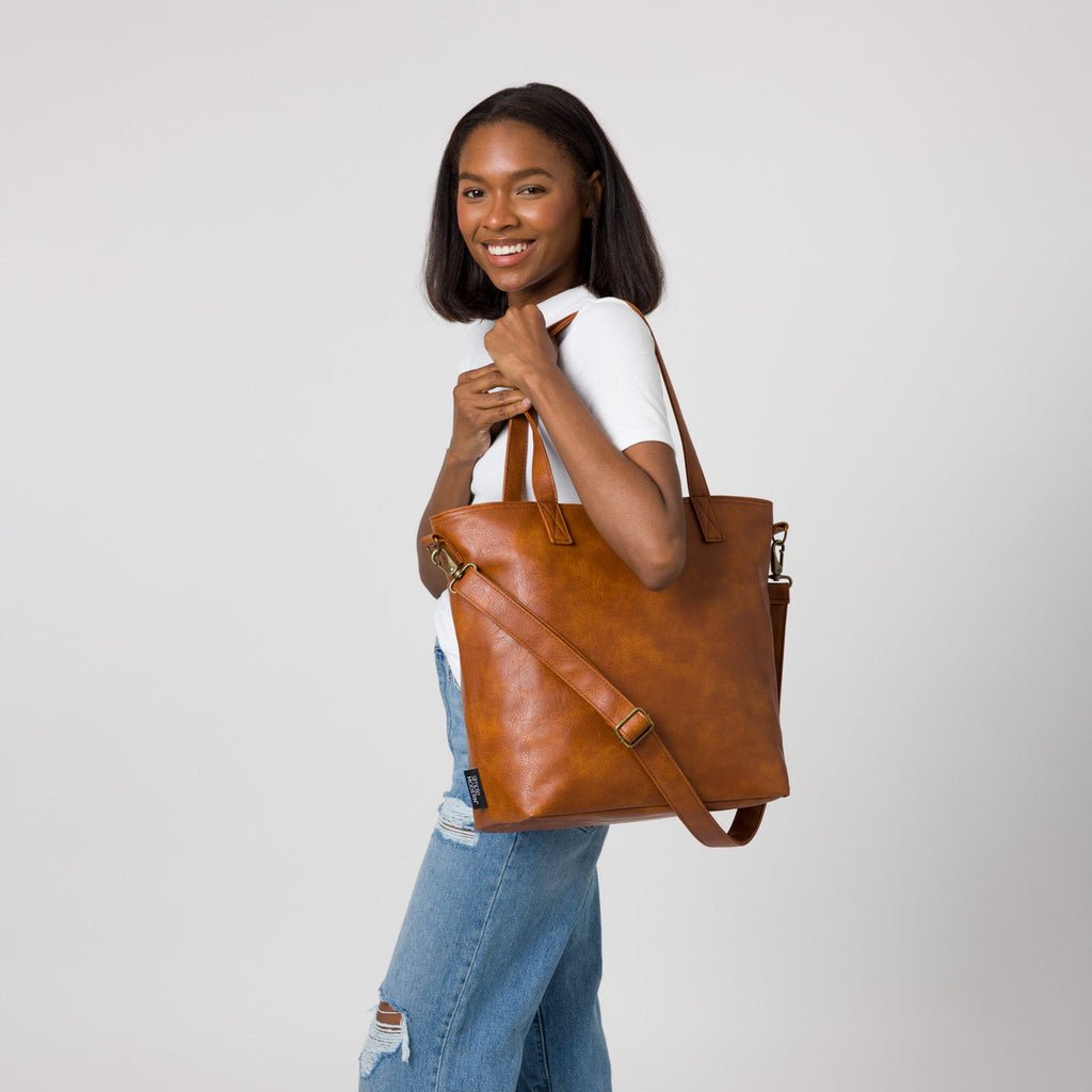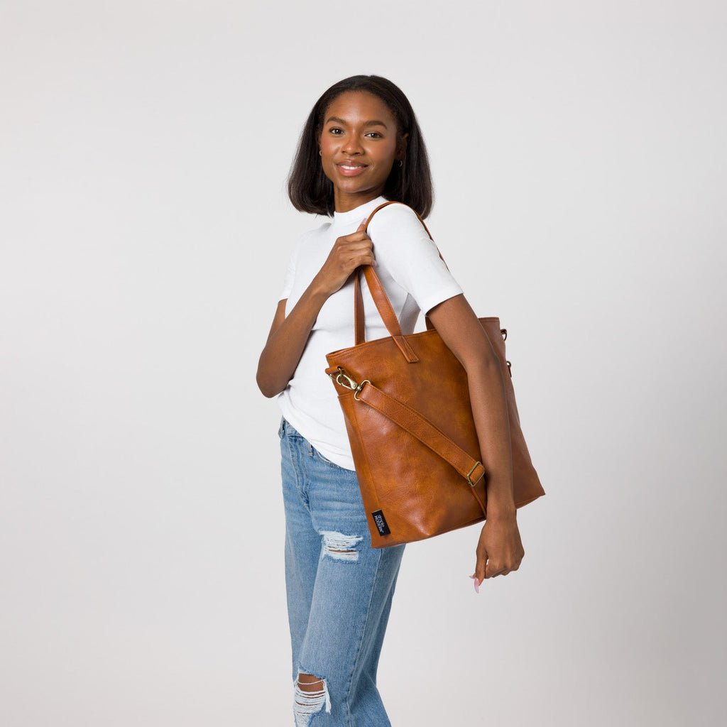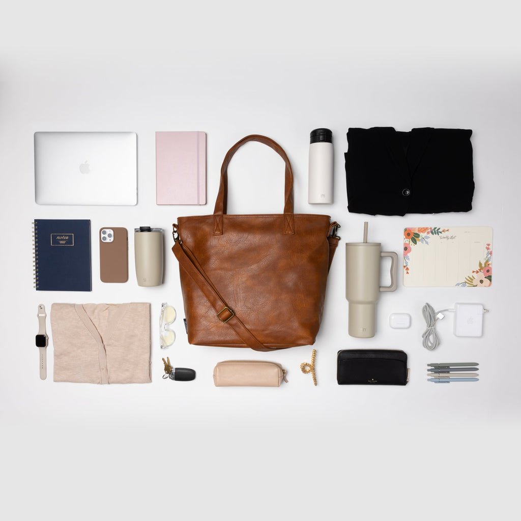 This vegan leather bag is ideal to complement any outfit and stay organized. It features durable handles and multiple pockets for your laptop, Trek tumbler or any of your favorite Simple Modern products.