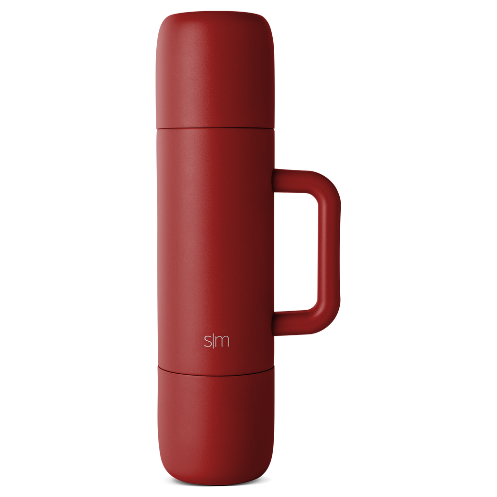 The Roam is a travel friendly 36oz thermos with a sturdy handle designed for easy pouring. The two 12oz mugs thread onto each end of the vessel so you're never without a mug. Turn your cap 90° and pour directly from the thermos into your cup.