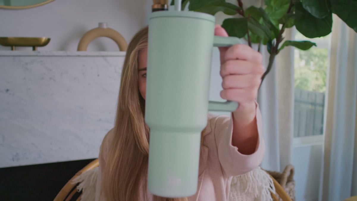 This 40oz cupholder friendly tumbler with handle is the perfect hydration companion keeping your drink cold 24+ hours. It has a leak resistant lid and color options so everyone can find their ideal style.