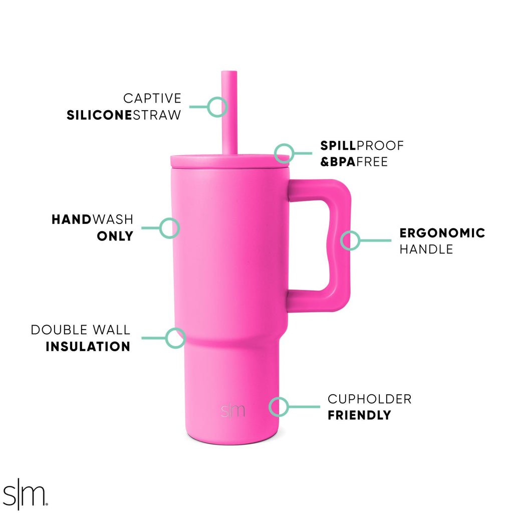 Spill-Proof Silicone Straw Lid: Comes with a silicone straw lid to prevent spills. Lid also compatible with Simple Modern Classic tumblers.