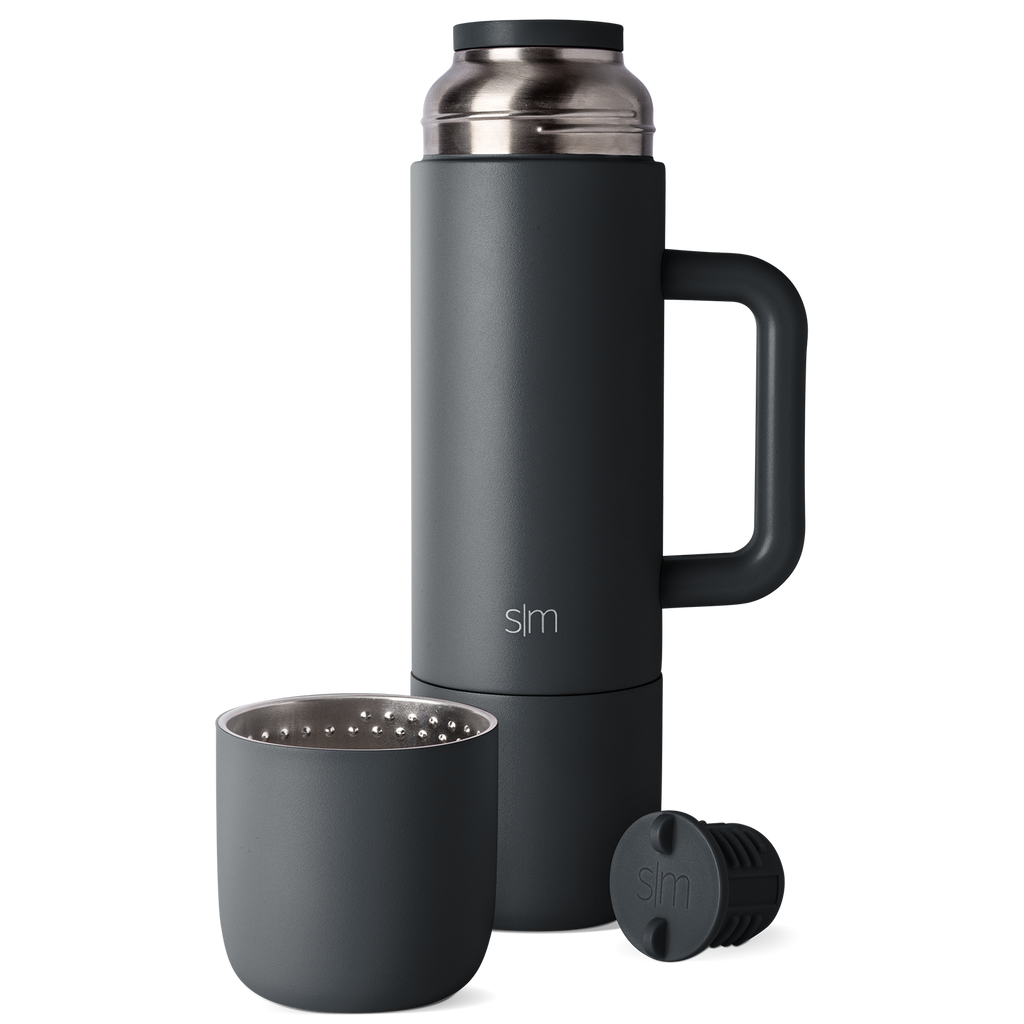 The Roam is a travel friendly 36oz thermos with a sturdy handle designed for easy pouring. The two 12oz mugs thread onto each end of the vessel so you're never without a mug. Turn your cap 90° and pour directly from the thermos into your cup.
