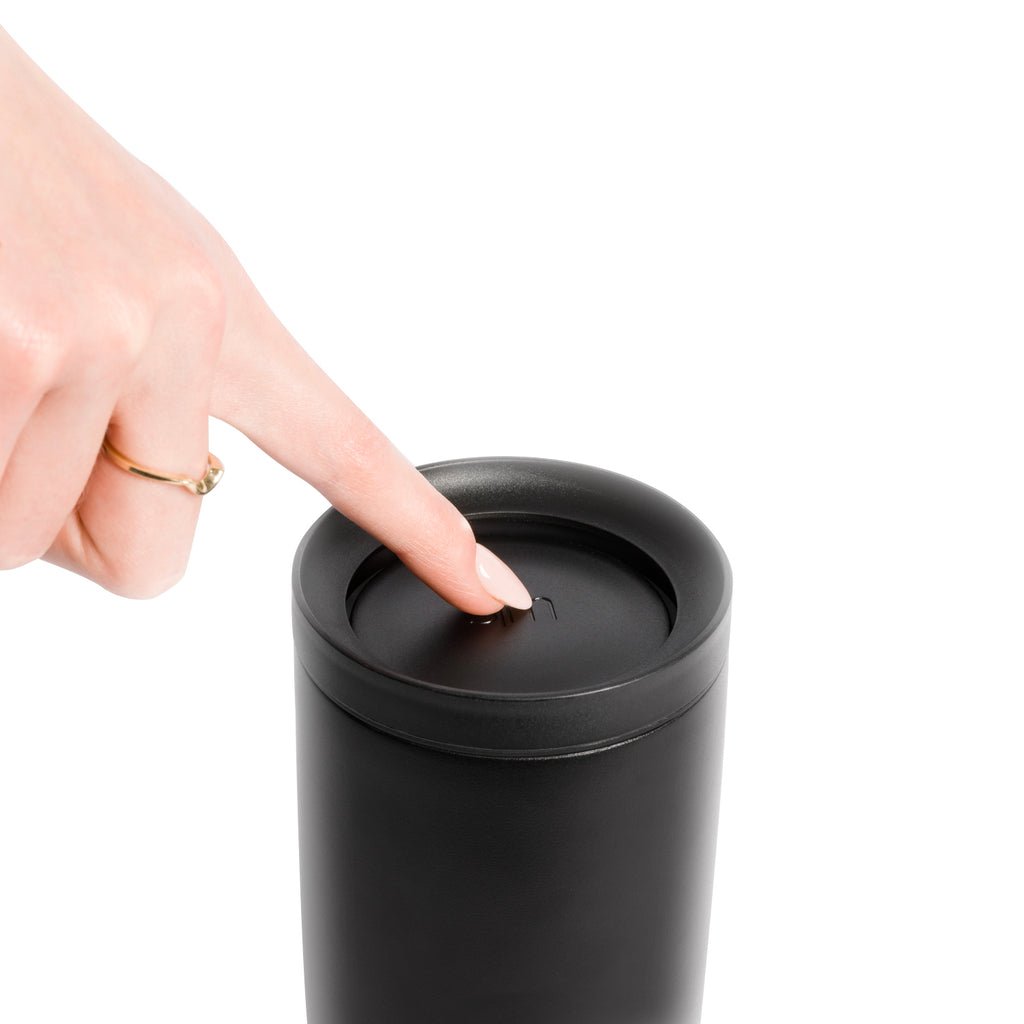 The Voyager Signature is our best coffee vessel ever. It's designed with a leak-proof, push-button lid that's drinkable from any position and lined with ceramic coating to preserve the flavor of your coffee while keeping it hot or cold for hours.